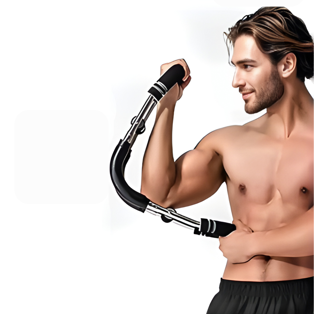 Hold one end of the bar against your hip or ribs. Curl the opposite end upward, bending the bar like in the product photos.