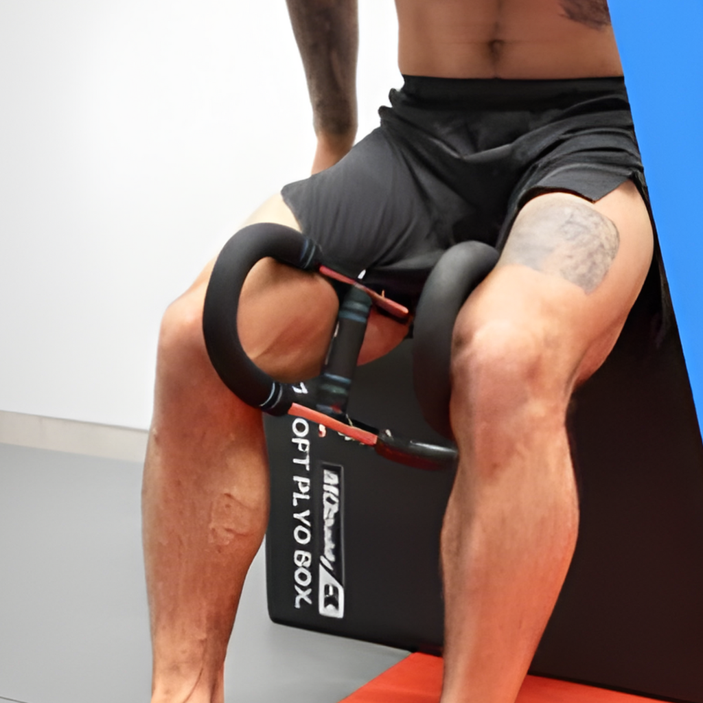 Hold the bar horizontally at chest height. Press inward, compressing the springs while keeping elbows high. Slowly release.